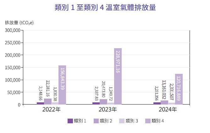 從各類別的排放占比來看,類別4為本公司最主要的排放源(87.2%),而其源於採買原物料所產生的間接溫室氣體排放,因此未來將針對採購原物料進行排放量評估、尋找其他低碳採購方式,達到溫室氣體減量。