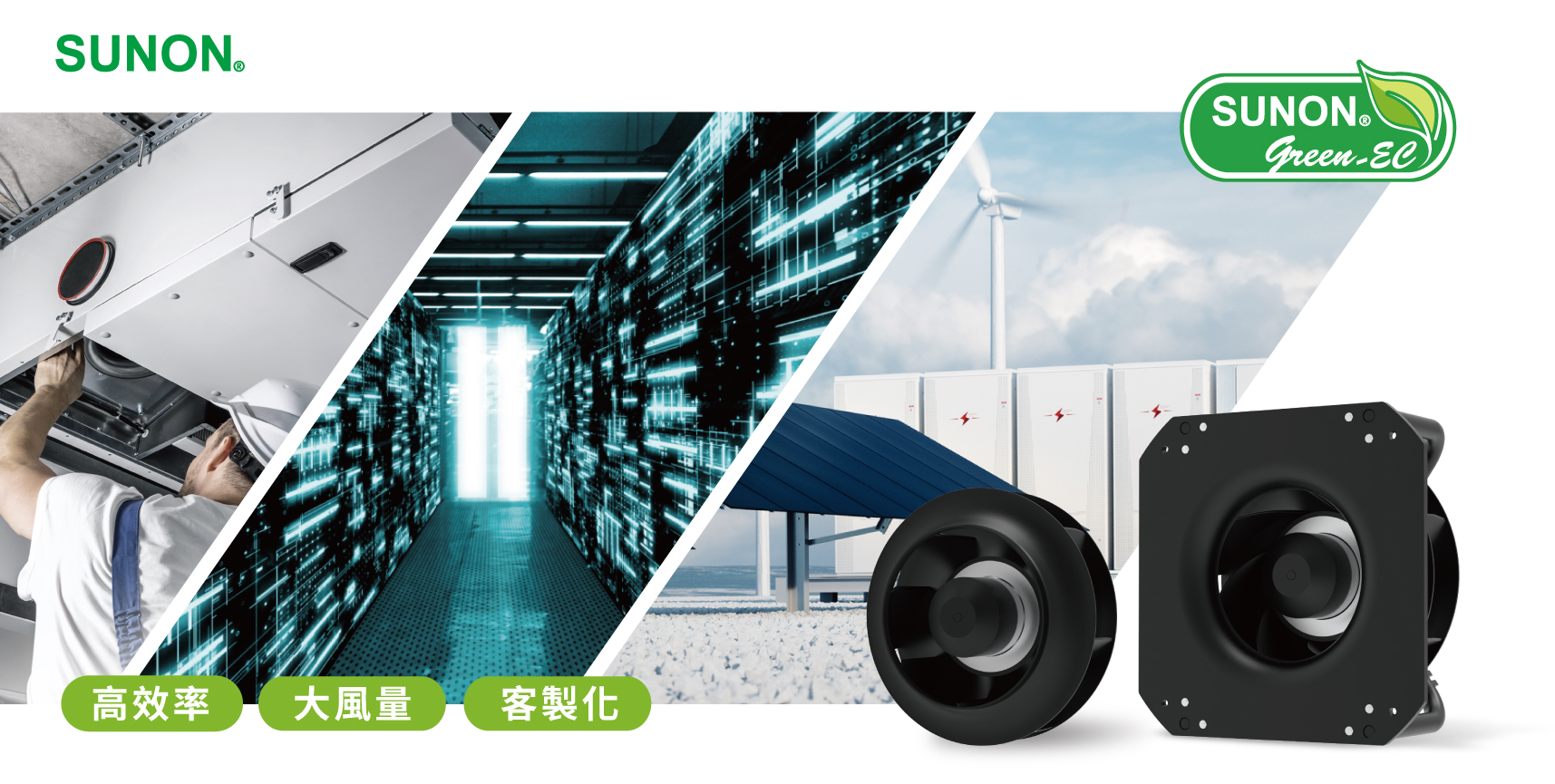 智控節能,靜享未來 面對全球節能減排風潮與日益嚴格的環保法規,對通風和空調設備的能效要求不斷提高,使得新一代通風解決方案,需採用先進變頻技術與空氣動力學設計,來大幅降低能耗,助力企業實現綠色轉型。 建準全新Green EC 離心風機系列,透過優化風機結構與降噪技術來提升風扇整體性能,更結合智能控制,實現商用高效率暖通空調系統遠端監控、自動調節風量,精準通風的需求。 Green EC 離心風機有2種版本選擇 為了符合通風設備的各種安裝,建準Green EC 離心風機提供有支撐架與無支撐架離心風機2種版本選擇。 ✔️智能速控 內建0-10 VDC、PWM控制;並可支援 RS485 Modbus精確控制氣流 ️✔️抵禦惡劣天氣防護設計 Green EC 系列產品具有IP44 ~IP55 的防塵防水以上設計,金屬材質表面都有額外的塗層達到防腐保護;針對特定應用可依需求客製化防爆設計。 ️✔️️可依系統客製化調整 可依你的暖通空調系統調整風扇轉速、尺寸、電壓、連接器、防護等級等需求。 節能、控制、高效的對流與散熱方案 大型的Green 離心扇系列,具有大風量、靜音、與智慧控制等優勢,針對HVACR、工業、能源、資料中心等大型設備通風散熱提供100V – 480V的電壓設計、智慧速控之特性,同時符合歐盟ErP 2026要求,特別適合於對節能永續有嚴格要求的高效率暖通空調系統。 產業應用 商用冷藏、暖風空調、電動車充電系統、儲能系統、工業機械、資料中心精密空調。 ※更多大型尺寸高風量離心扇 EC 400、EC 500、EC 560 、EC 630系列產品 將於 2025 年 7 月開始提供樣品申請。