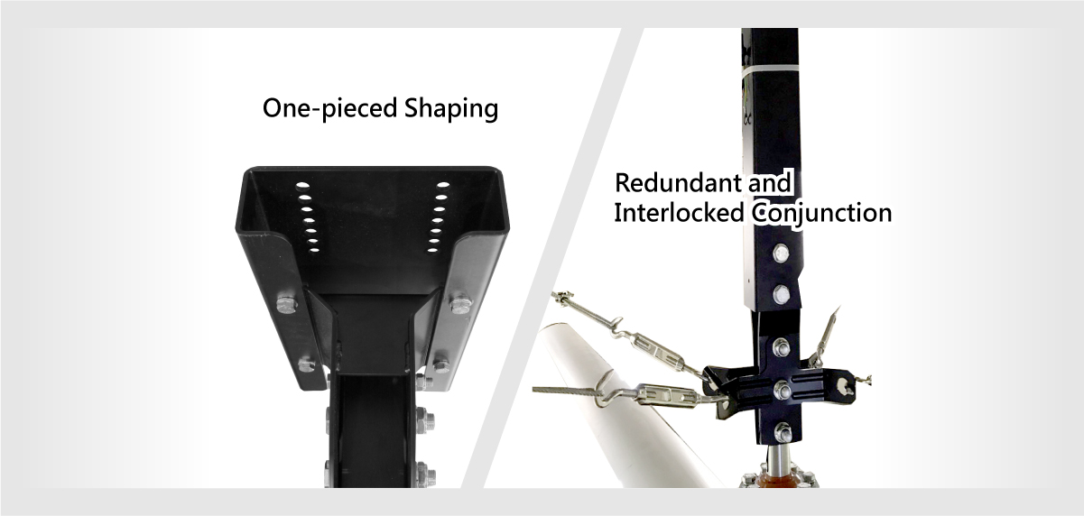 2.Redundant Conjunction:The mount tube adopts three sets of screws on every junction to ensure a firm shockproof, low sloshing, and crosswind resistance of the whole structure.